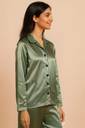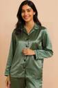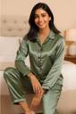 Indulge in luxurious comfort with this elegant women's satin night suit, designed to elevate your nighttime routine. Crafted from smooth, high-quality satin fabric, the set features a soft, button-down shirt with a classic collar and long sleeves, paired with relaxed-fit pyjama bottoms that offer a gentle drape and a flattering silhouette.