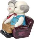 G LOOKS Laughing Old Couple Siting on Couch Statue/ Happy Couple statue for Home Decor Decorative Showpiece - 12 cm  (Polyresin, Multicolor)