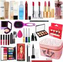 This Pop-Top Set cosmetics include Eye shadow Palette, 4 Lipsticks, 4 Lip gloss, 4 eyeliners, 2 (5 in1) Lipstick, 13 Lip liner, Pen Eyeliner, Concealer Pallet, 5 makeup brush, Kajal, Face Makeup Foundation, Hair Brush, Compact powder, Bindi, 4 eyeliners, Mascara, Primer, Powder puff, Gift makeup Box,The most sweetest present for your beloved. All women's essentials in one elegant box and a great gift for any occasion.