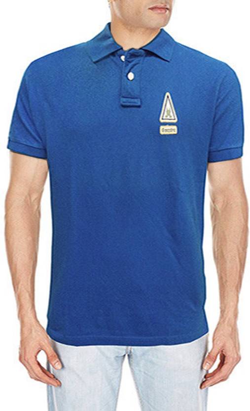 Gaastra Men Solid Polo Neck Cotton Blend Blue T-Shirt