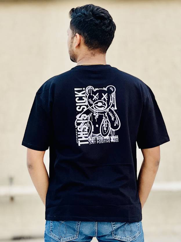 Men Printed, Typography Round Neck Cotton Blend Black T-Shirt