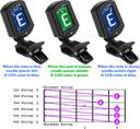 Turning 360 degree freely. Adjustable view angle. A large LCD screen. Full color display. Super anti-interference. Handy compact digital clip-on style. Tuner picks up the sound by vibration. Easy to clip onto any stringed instrument. Sensitive and stable. Tuning Pitch Indicator Light: In flat: Indicator to the left and LCD screen turns red; In sharp: Indicator to the right and LCD screen turns yellow; In tune: Indicator to the middle and LCD screen turns green.