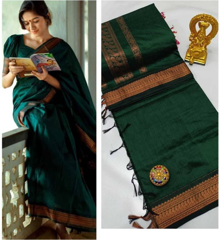 1 x Solid/Plain Banarasi Cotton Blend Saree (Green)