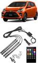 Voltage: DC 12V; Wattage: 10W; Bulb Quantity: 4pcs 48 LEDs, 12 LED/ Light. Most buyers perhaps will not use the remote control correctly, pls notice that: 1. The remote control should point directly to the black receiver box and there is no obstacle between them; 2. The remote should be put near to the receiver box, not too far 8 Color RGB LED Car Interior Underdash Lighting Kit, Wireless Music Remote Control enables you to change the color and adjust the brightness as you wish, also Sound-activated Function allows you to enjoy the fun with the color changing following your car stereo music rhythm as well as your voice Flexible, UV & Water Resistant, Ultra Thin, High quality Music LED Strip Light, can be easily installed in the gap and virtually invisible; Fits all Cars SUV vans trucks boats with DC 12V power Double-sided adhesive straps, directly inserted in cigarette lighter, without modification. Simple design for you to decorate your car a beautiful, exotic and romantic interior Package Include: 4 x SMD5050 Car LED Strip Lights; 1 x Remote Control.