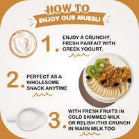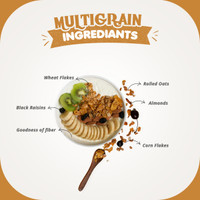 Made with multigrain ingredients, including wheat flakes, rolled oats, almonds, black raisins, and cornflakes, this muesli can be a testament to the art of healthy eating. Also, an absence of trans fat and cholesterol can form your foundation for a nutritious start to the day. Moreover, dried fruits and a touch of honey can enhance the flavour and provide a natural sweetness that appeals to all palates. Thus, it can blend delicious taste and rich antioxidants, boosting your immune system.