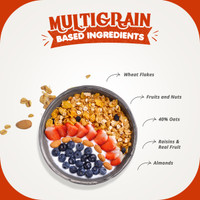 Featuring a low-fat formulation and the goodness of multigrain ingredients, this muesli can be a holistic solution for a healthy diet. The presence of rolled oats and wheat flakes can contribute to your daily fibre intake, and provide a steady energy source, keeping you satiated and focused throughout the day. Additionally, its natural sweetness from honey, glucose and the assortment of dried fruits can ensure a nutritious and delicious meal.
