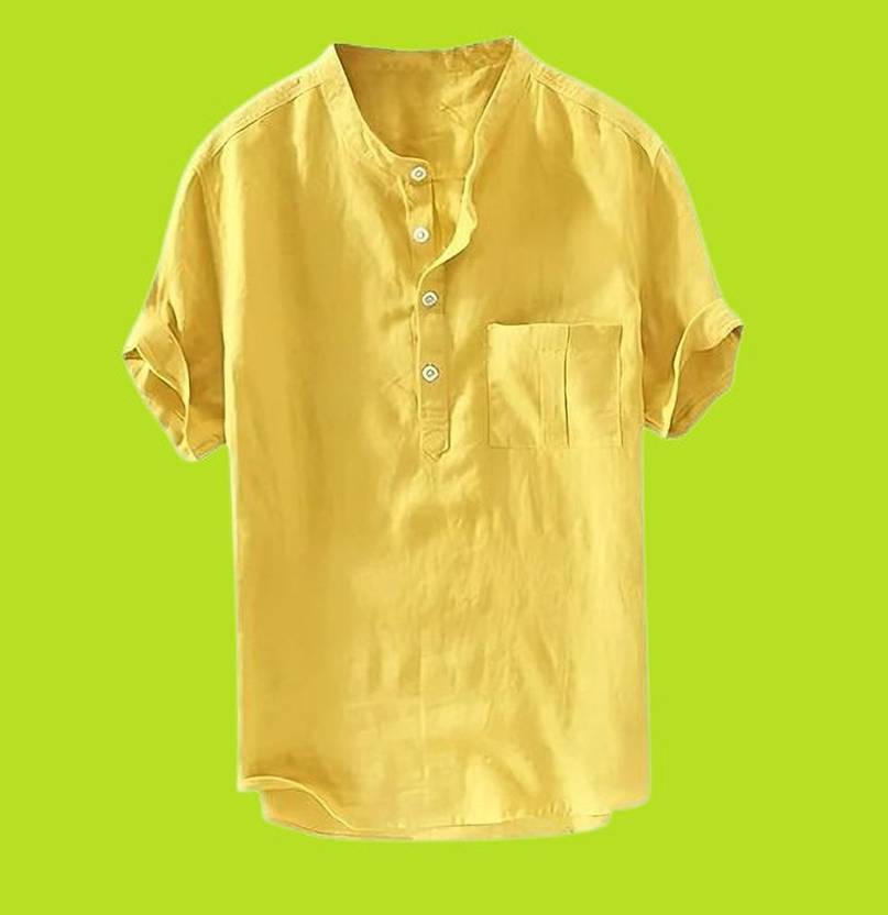 GUYS HUB Men Solid Straight Kurta (Yellow)