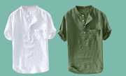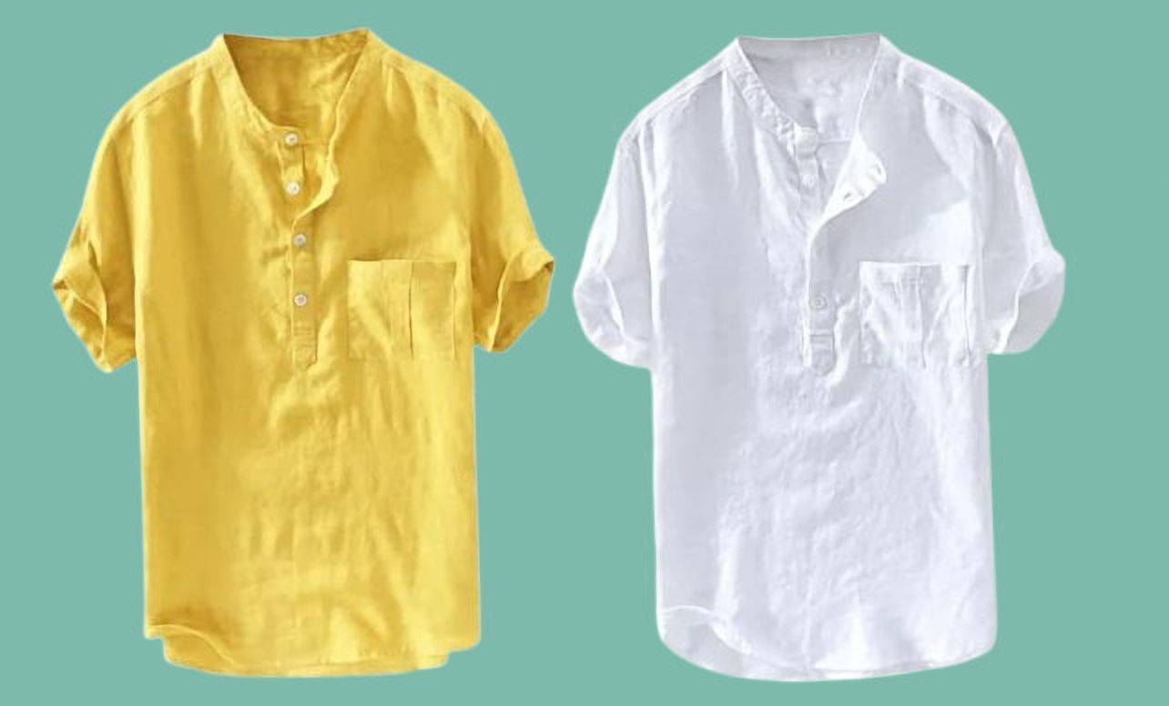 Men Solid Cotton Blend Straight Kurta (White, Yellow)
