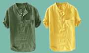 SuperTrend Men Solid Straight Kurta (White, Yellow)