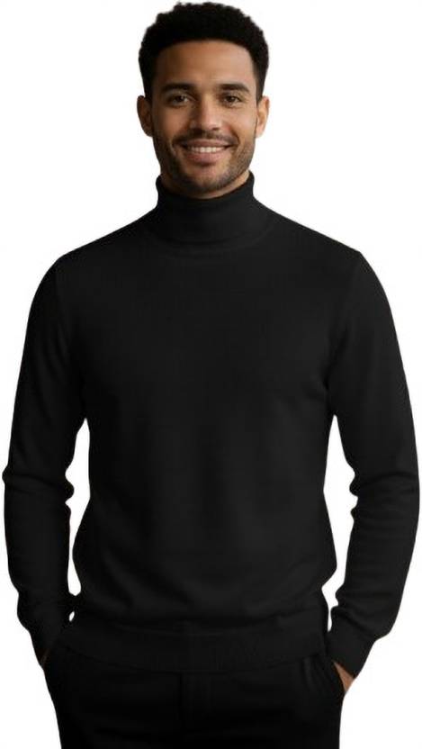 GAINELL Solid Turtle Neck Casual Men Black Sweater