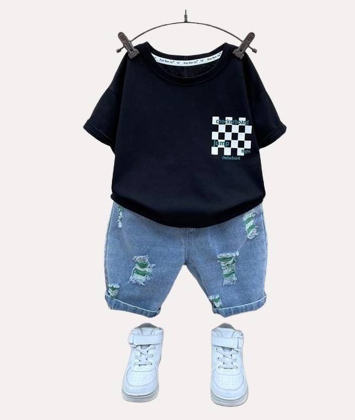 GAJANAN CREATION Baby Boys & Baby Girls Casual Pocket Square Jeans, Three Fourth Pant (BLACK PACK OF 1)
