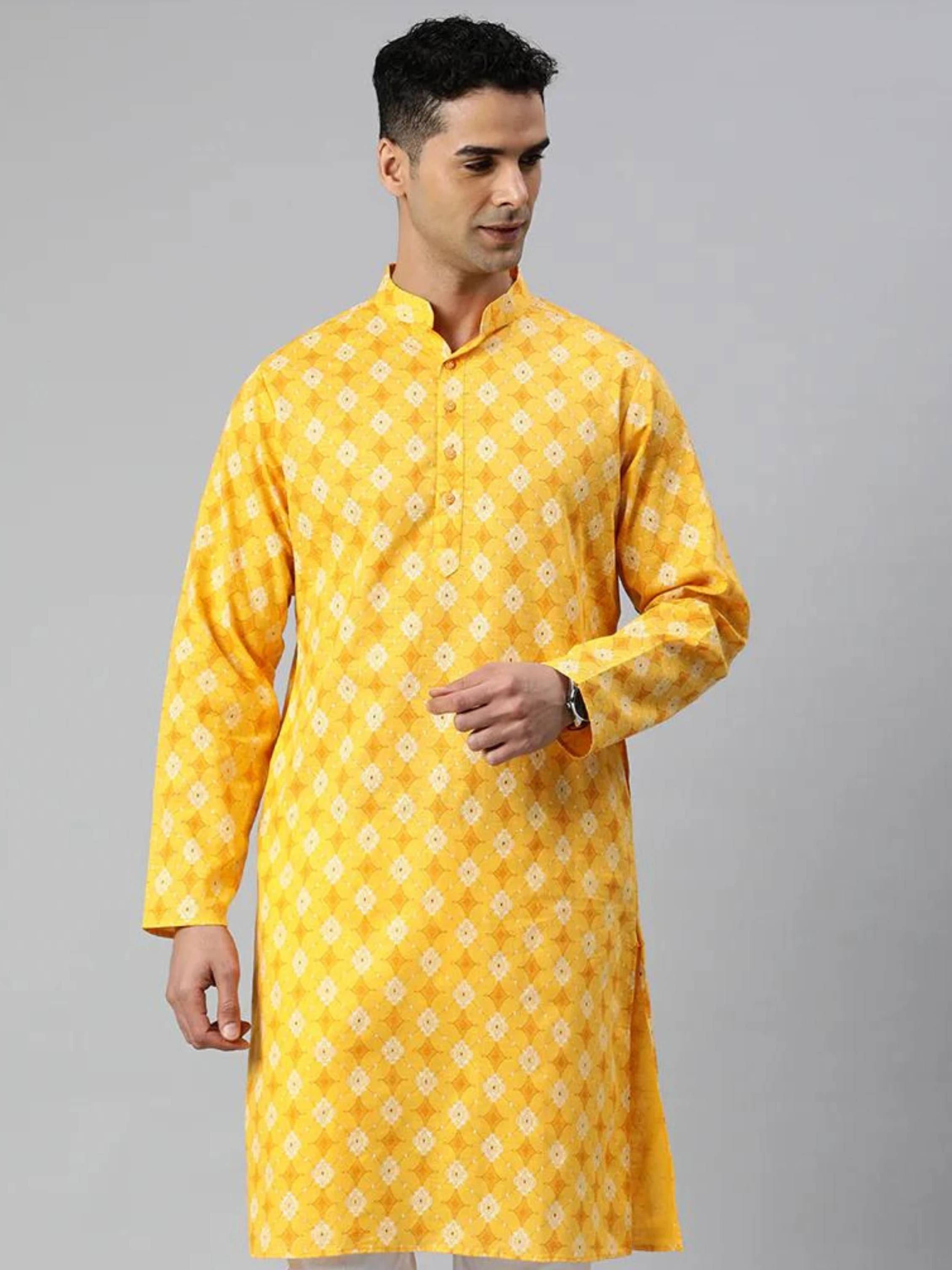Celebrate in style thanks to the printed motifs featured across the kurta’s surface. These lively patterns lend a festive vibe suited perfectly for joyful occasions like Haldi ceremonies. Enjoy how these designs effortlessly enhance traditional appeal without feeling overwhelming, keeping things simple yet cheerful for every gathering.