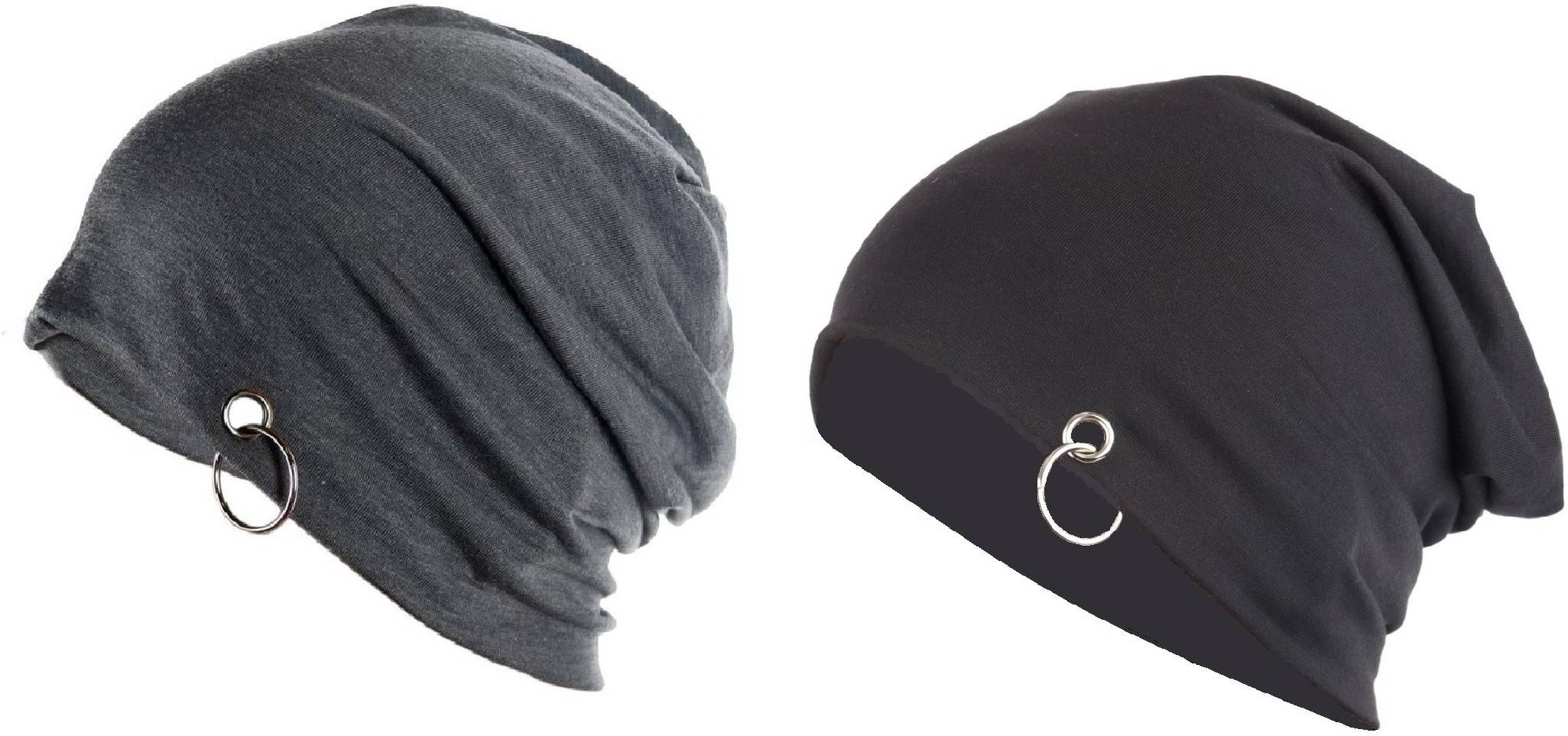 Coal Grey & Midnight Black Slouchy Beanie with ring