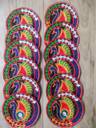 12 pcs embroideryed beautiful patch (butta) with original mirror on black fabric for chaniya choli decoration. This patches used for chaniya choli preparation give traditional look to your chaniya choli with help of wool thread embroideryed patch total 12 pcs 10cm width and 10 cm height