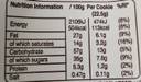 Energy 2106kj, Fat 27g, Which Saturates 14g, Carbohydrate 57g, Sugars 35g, protein 5.3g, Salt 0.47g