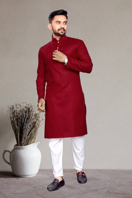 GalaxyZone Men Solid Cotton Blend A-line Kurta  (Maroon)