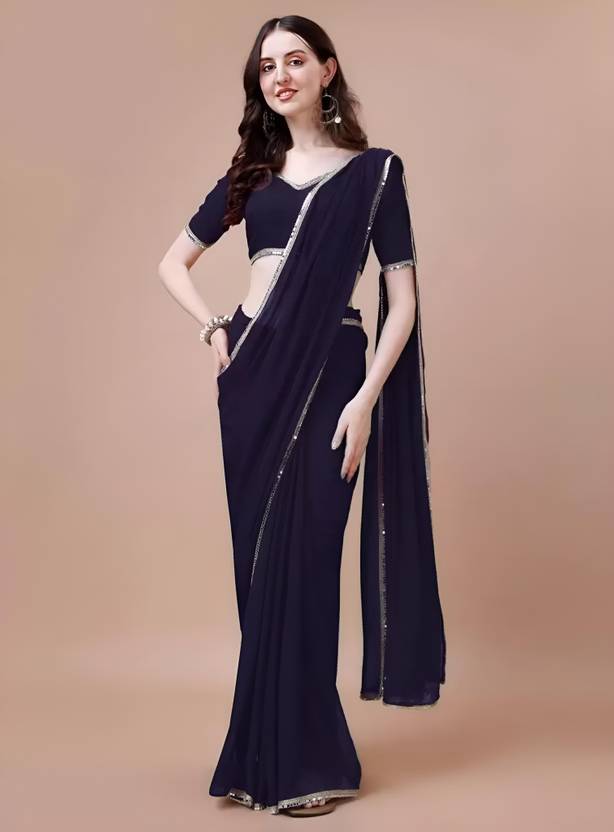 Solid/Plain Bollywood Georgette Saree (Blue)