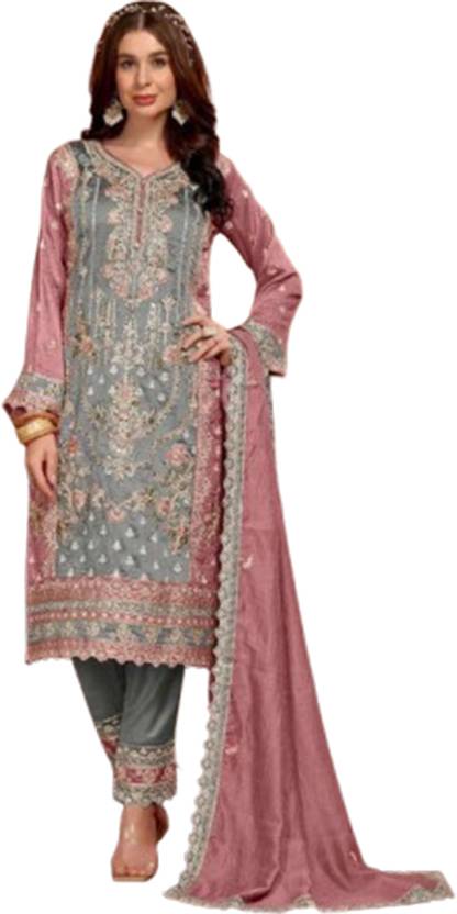 Semi Stitched Chiffon Salwar Suit Material Embroidered