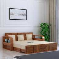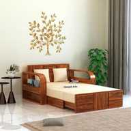 Ganpati Arts Scott Solid Sheesham Wood with Side Pocket Mini Storage 3 Seater Double Solid Wood Pull Out Sofa Cum Bed (Finish Color - Scott-2 Natural Delivery Condition - DIY(Do-It-Yourself))