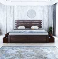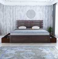 Ganpati Arts Sheesham Wood Queen Size Bed for Bedroom/Home/Hotel/LivingRoom (With Storage) Solid Wood Queen Drawer Bed (Finish Color - Walnut, Delivery Condition - DIY(Do-It-Yourself))
