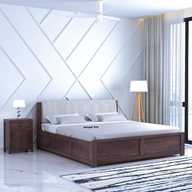 Ganpati Arts Solid Sheesham Wood Queen Size Boston Bed with Box Storage Bed Solid Wood Queen Box Bed (Finish Color - Walnut Finish, Delivery Condition - DIY(Do-It-Yourself))