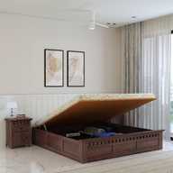 Ganpati Arts Solid Wood Queen Hydraulic Bed, 210 cm x 160 cm (6.89 ft x 5.25 ft) (Finish Color - Natural Finish-HYD, Delivery Condition - DIY(Do-It-Yourself))