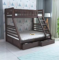 Ganpati Arts Wooden Italian Bunk Bed/Wooden Twin Over Bed with Ladder With 2 Drawer Storage Solid Wood Bunk Bed (Finish Color - Walnut, DIY(Do-It-Yourself))