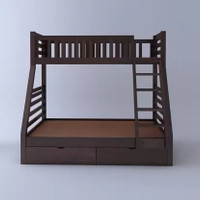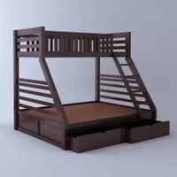 This is a specially crafted bed that comes in a bunk bed design. This design has a double-row feature and has dual flat surfaces placed one above the other. The dual beds are connected through a ladder and connecting framework for a well-spaced look. The beds are spacious and have a single bed design in the upper bed and a double bed design in the lower bunk. The beds can accommodate about three individuals in comfortable sleeping positions.