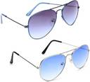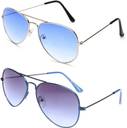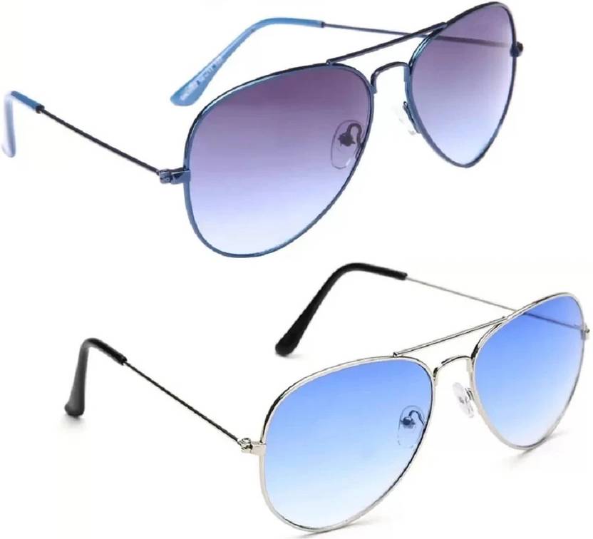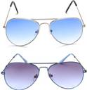 Gansta Blue Aviator sunglass combo. Plastic Lenses for 100% UV Protection (UVA & UVB rays). Size - Medium (58 mm). Blue frame with gradient blue lenses, Silver frame with gradient blue lenses. Ideal for Men Women & Teenager. We offer 1 month warranty against any manufacturing defects.