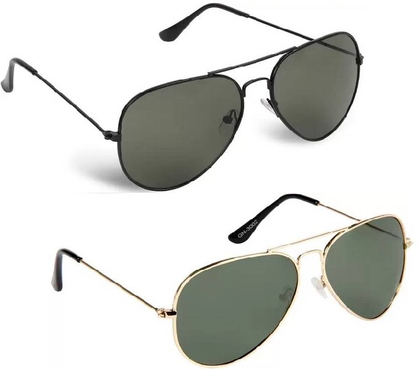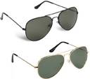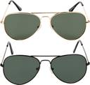 Size - 57 mm (Medium), Aviator sunglasses combo, Golden frame with full green lenses, Black frame with full green lenses