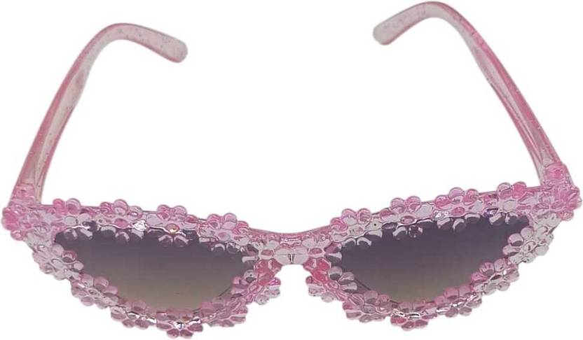 The image shows DukieKooky Unisex Kids White Floral Cat-Eye Sunglasses. These sunglasses feature a white frame adorned with floral embellishments and dark lenses. They are designed in a cat-eye style, characterized by an upsweep at the outer edges. These sunglasses are marketed for kids and are made from durable, lightweight materials such as polycarbonate. The lenses offer UV protection.