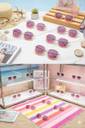 The Sunglass Are Off-white with round frame and black lenses. They feature a thin gold-tone metal frame around the lenses. The image shows round sunglasses with a white frame and brown lenses. The frame is thick and round, with gold accents at the hinges and temples. The lenses are a gradient brown color, fading from dark at the top to lighter at the bottom.