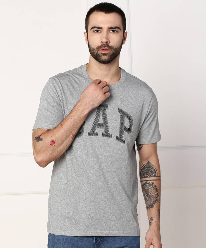 GAP Men's Logo Crewneck T-Shirt Men Typography Round Neck Pure Cotton Grey T-Shirt