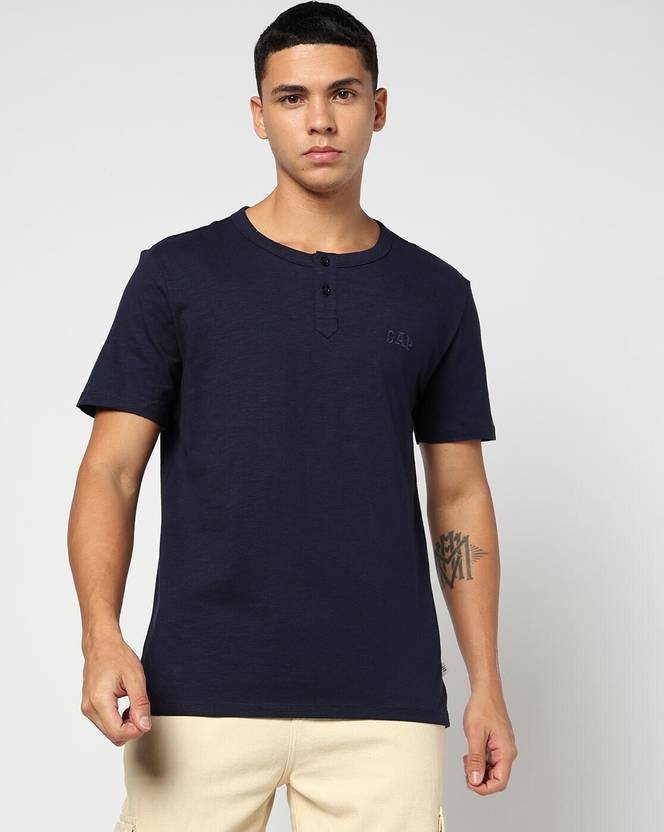 Check out this casual T-shirt from gap. Fashionable and appealing, this Regular fit T-shirt comes in a shade of dark blue. This versatile piece can be worn and styled for almost any occasion. It features a stylised neck and short sleeve length. Whether heading out for casual catchup with friends or making movie plans, you can easily team it up with a pair of jeans or a solid-colored skirt to achieve your go-to look.