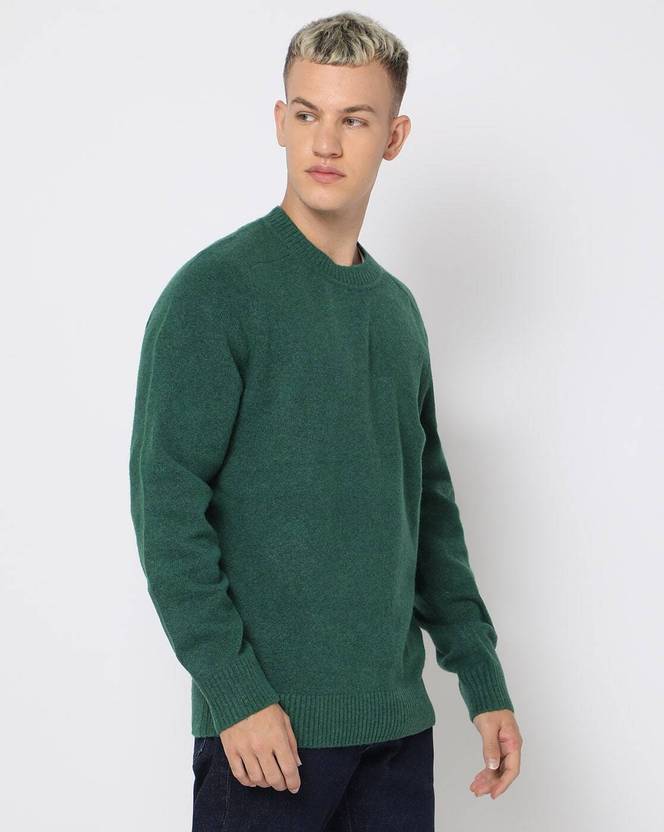This round-neck sweater with full-length sleeves and a solid pattern provides a regular fit for everyday comfort.