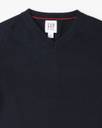 This relaxed fit sweater features a solid pattern, V-neckline, and full sleeves. Perfect for casual days, it offers warmth and comfort with its soft, breathable fabric.