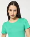 Women Solid Crew Neck Pure Cotton Green T-Shirt