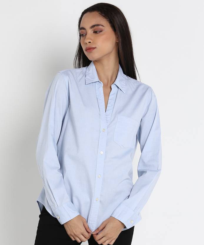 Women Regular Fit Solid Spread Collar Casual Shirt