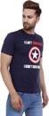 Men Printed Round Neck Cotton Blend Dark Blue T-Shirt