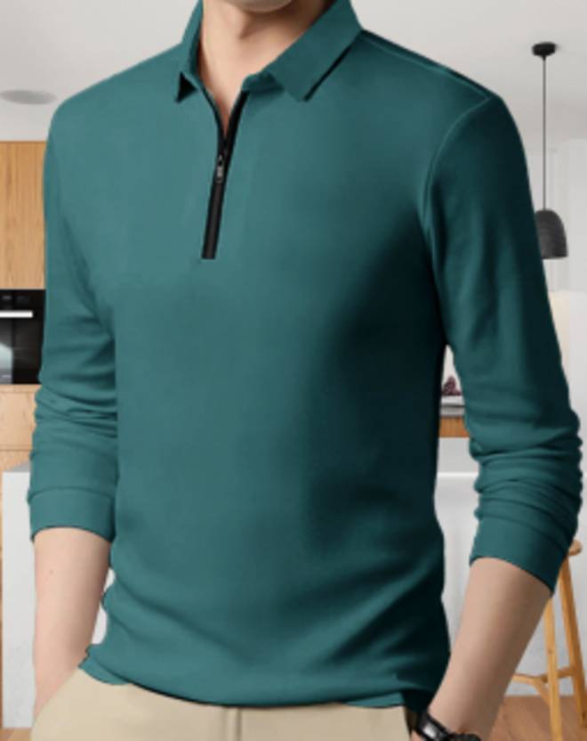 The Polo full sleeves solid t-shirt for men combines classic style with modern comfort. Made from soft, breathable fabric, it features a timeless polo collar with a button placket, adding a touch of sophistication to your casual look. The full sleeves provide added warmth and versatility, making it ideal for cooler weather or layering. Available in a variety of solid colors, this t-shirt effortlessly pairs with jeans, chinos, or shorts, offering a refined yet relaxed style for everyday wear, casual outings, or social gatherings.