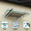 Garbnoire Multi-Purpose Fancy Glass Shelf/Set Top Box Stand with Heavy Wall Brackets, 12 X 9 INCH Glass, Stainless Steel Wall Shelf (Number of Shelves - 1, Clear)