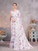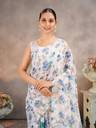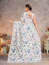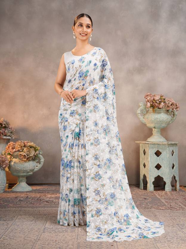 GARDEN VARELI Floral Print Bollywood Brasso Saree (Blue)