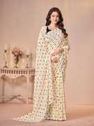 Beautiful floral vine patterns and polka dot detailing print design in classic Saree. Light comfortable to wear, perfect for Casual, Work and Daily wear.