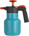 The GARDENA Comfort Pressure Sprayer 1.25 l has a filling capacity of 1.25 litres and is the ideal product for universal use in the garden and home. Contrary to the Pump Sprayers, pressure must simply be built up in the sprayer and then, with the press of a button, plants can be effortlessly watered. The Comfort Pressure Sprayer is especially convenient: the ergonomic pump- and handle grip, as well as the integrated absorption in the handle, allow optimal shock absorption during pumping. It is designed for up to max. 3 bar and is equipped with a safety valve that reduces pressure when required. The level indicator shows the filling quantity without the need to open the container. The nozzle is fully adjustable from hard jet to fine mist and can be individually applied. The filter at the suction pipe is practical and protects against nozzle obstruction.