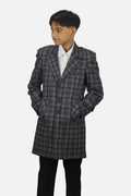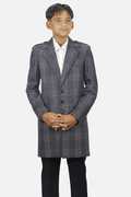 Boys Checkered Single Breasted Casual Blazer (Grey)