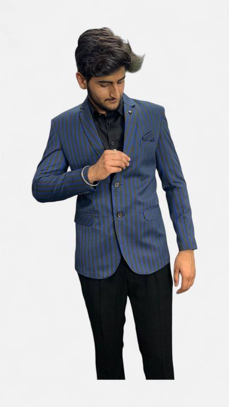 gargian master cut Men Checkered Single Breasted Formal, Party Blazer  (Blue)