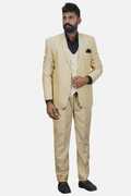 Material & Fabric – Made from high-quality Polyester, offering a smooth finish and long-lasting durability::Fit Type – Regular Fit::Design – Classic single-breasted blazer with notch lapel 2-button closure, double breasted waistcoat, and matching flat-front trousers::Occasion – Perfect for weddings, business meetings, parties, and festive celebrations::Features – Lightweight fabric, wrinkle-resistant, multiple pockets, and elegant stitching for a refined look.