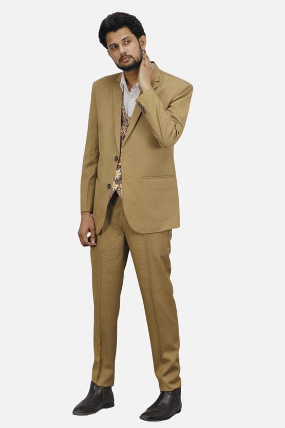 Material & Fabric – Made from high-quality Polyester, offering a smooth finish and long-lasting durability::Fit Type – Regular Fit::Design – Classic single-breasted blazer with notch lapel 2-button closure, double breasted waistcoat, and matching flat-front trousers::Occasion – Perfect for weddings, business meetings, parties, and festive celebrations::Features – Lightweight fabric, wrinkle-resistant, multiple pockets, and elegant stitching for a refined look.