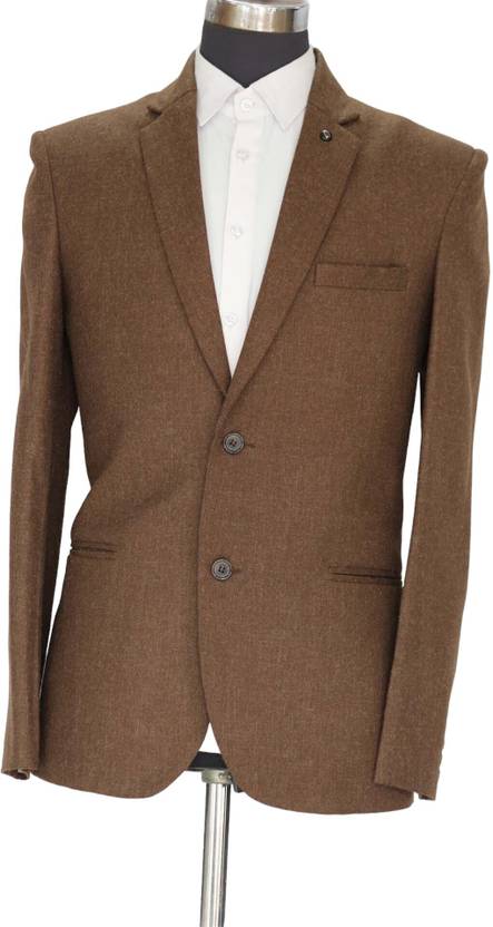 gargian master cut Men Solid Single Breasted Formal, Party Blazer (Brown)