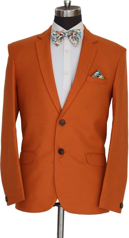 gargian master cut Solid Single Breasted Formal, Party Men Blazer (Orange)
